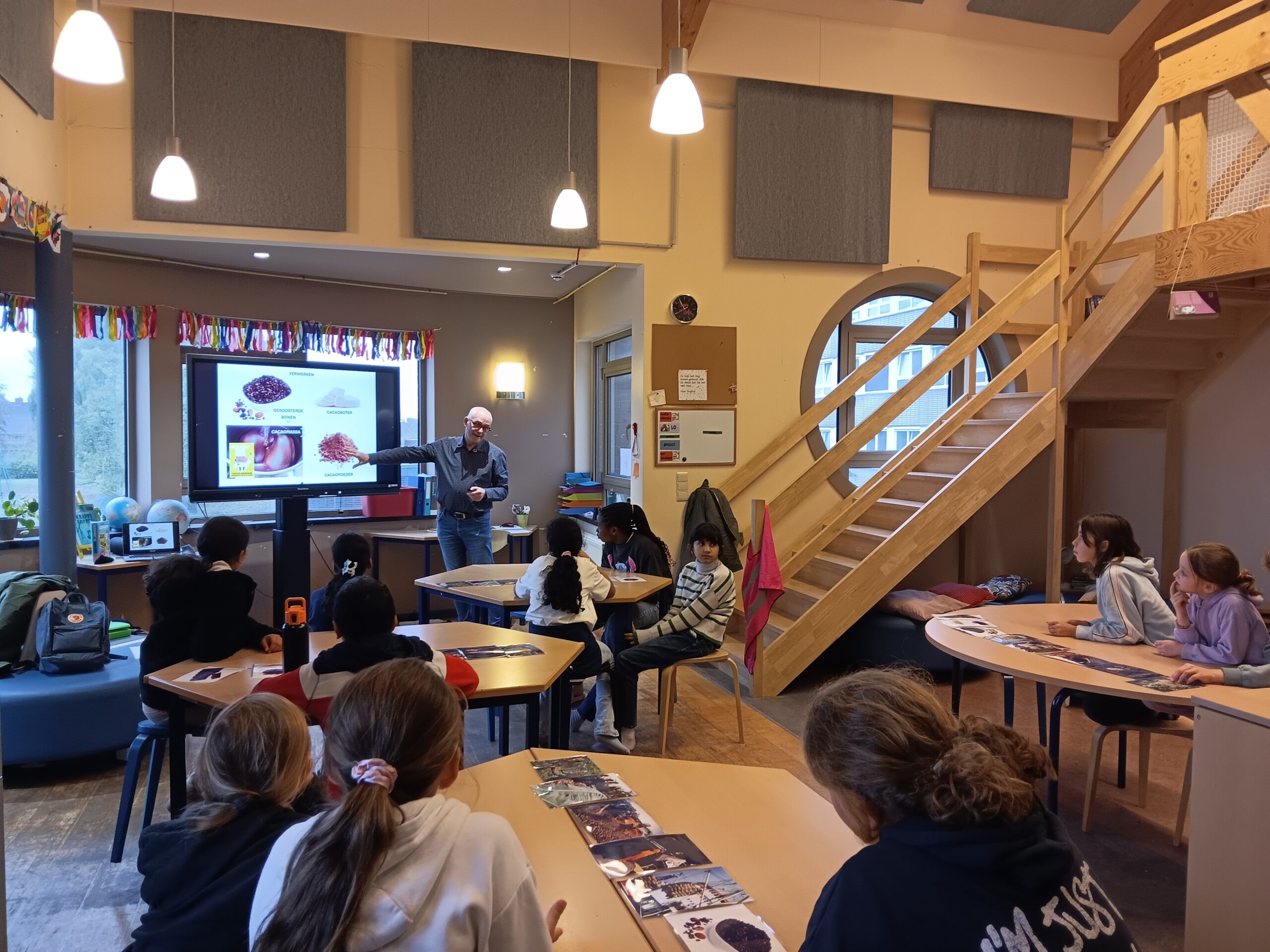 Net voor de vakantie kregen we bezoek van Johan en Bernard van de 3 Wijzen-winkel in Kuurne. In een gastles leerden we hoe chocolade gemaakt wordt en verkenden we de hele keten van producent tot verbruiker. Daarbij hadden we vooral aandacht voor Fair Trade: wat betekent ‘eerlijke’ handel’? Om af te sluiten proefden we de heerlijke Oxfam-chocolade.