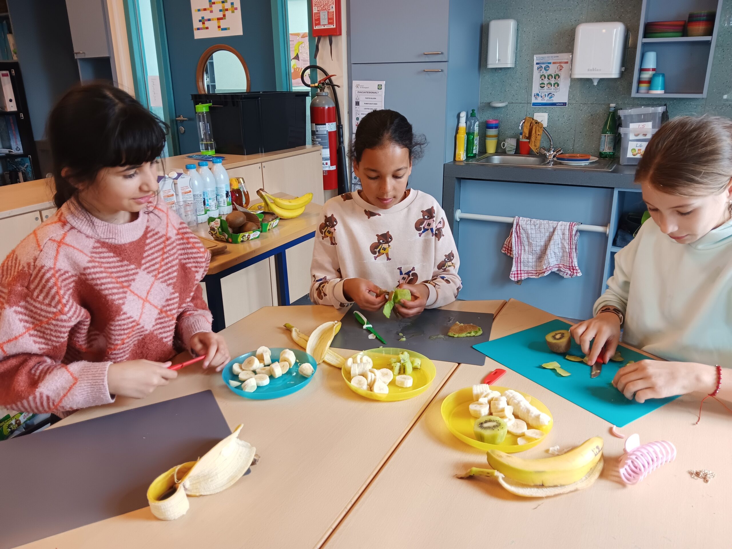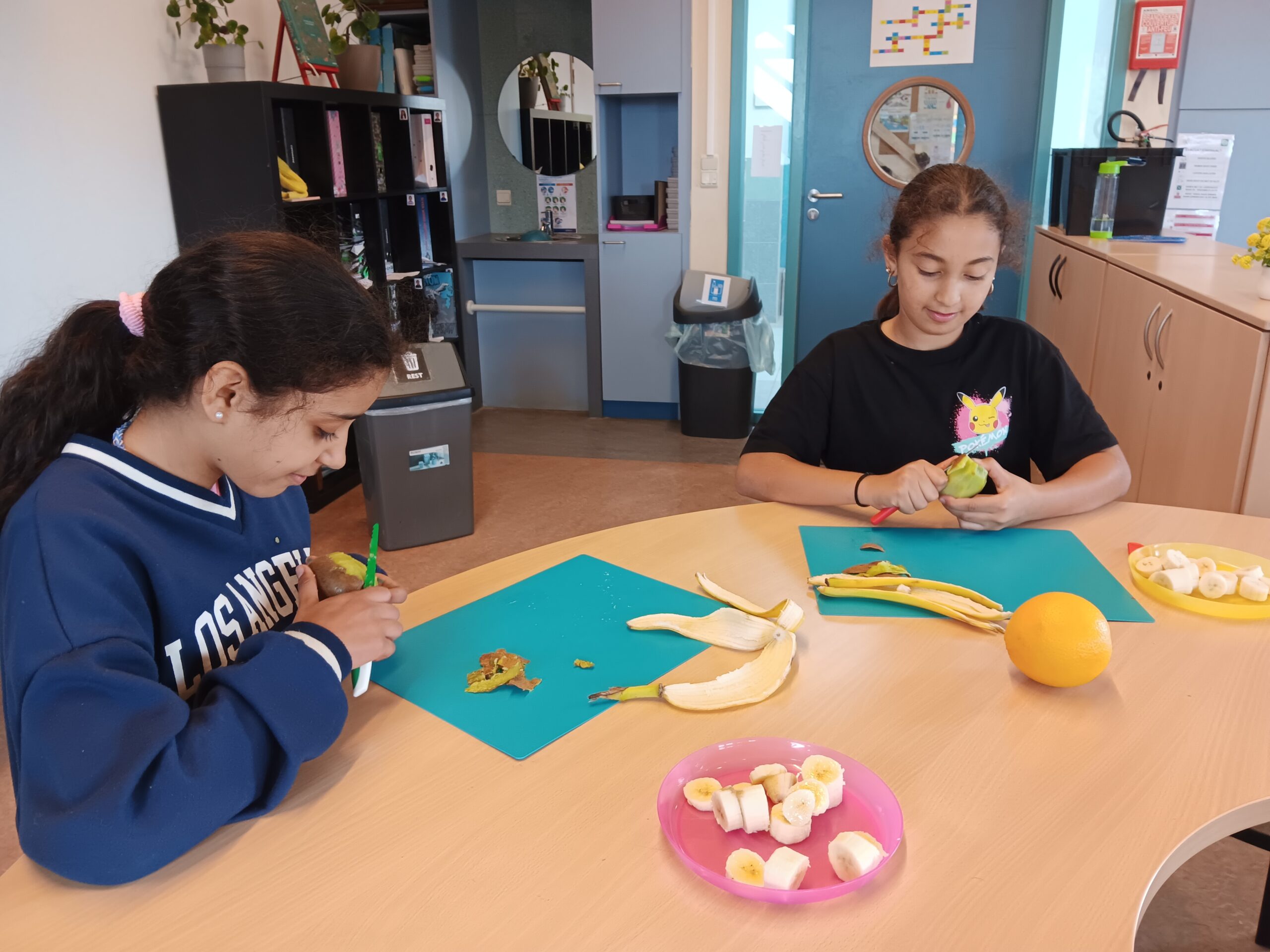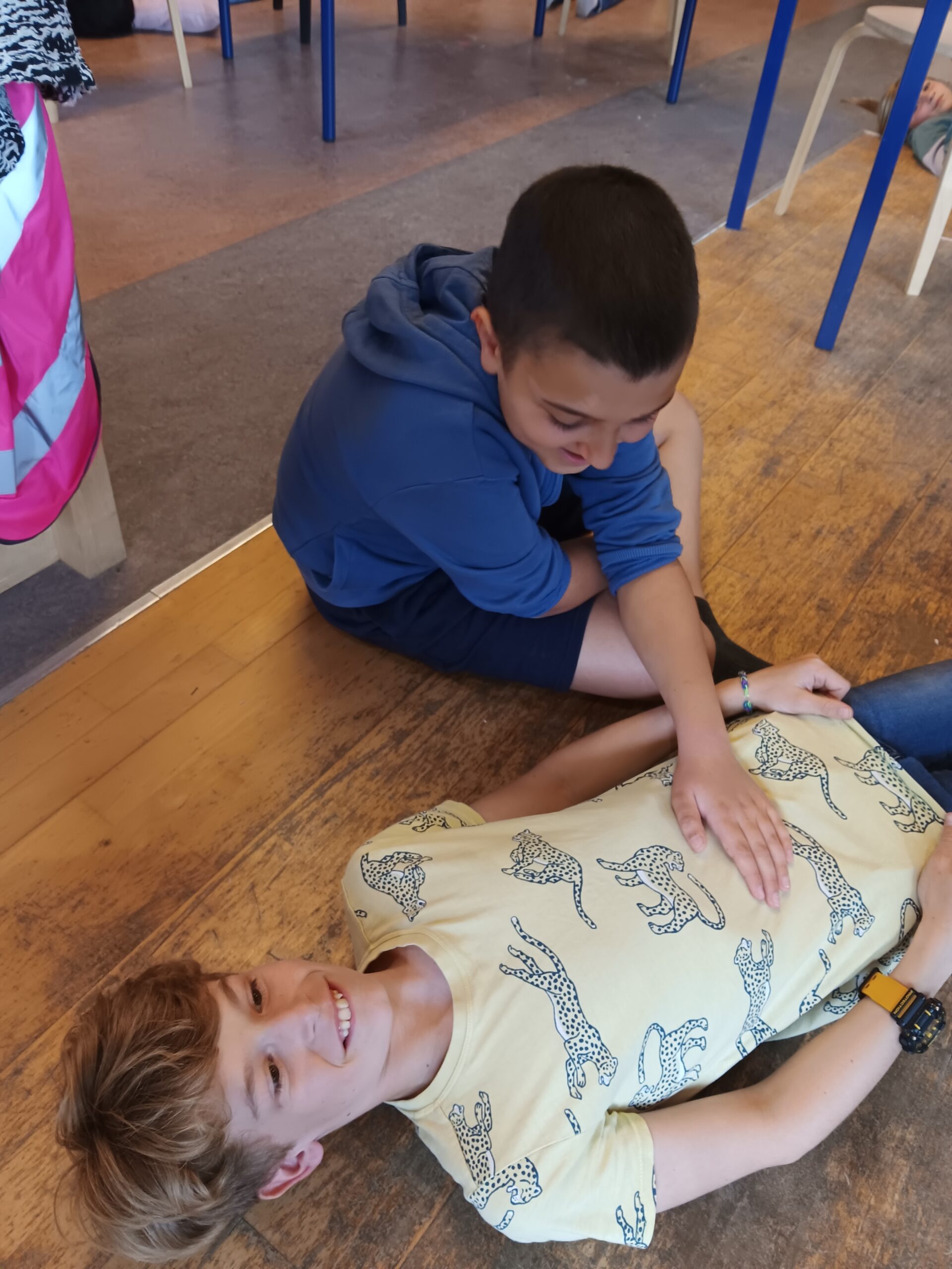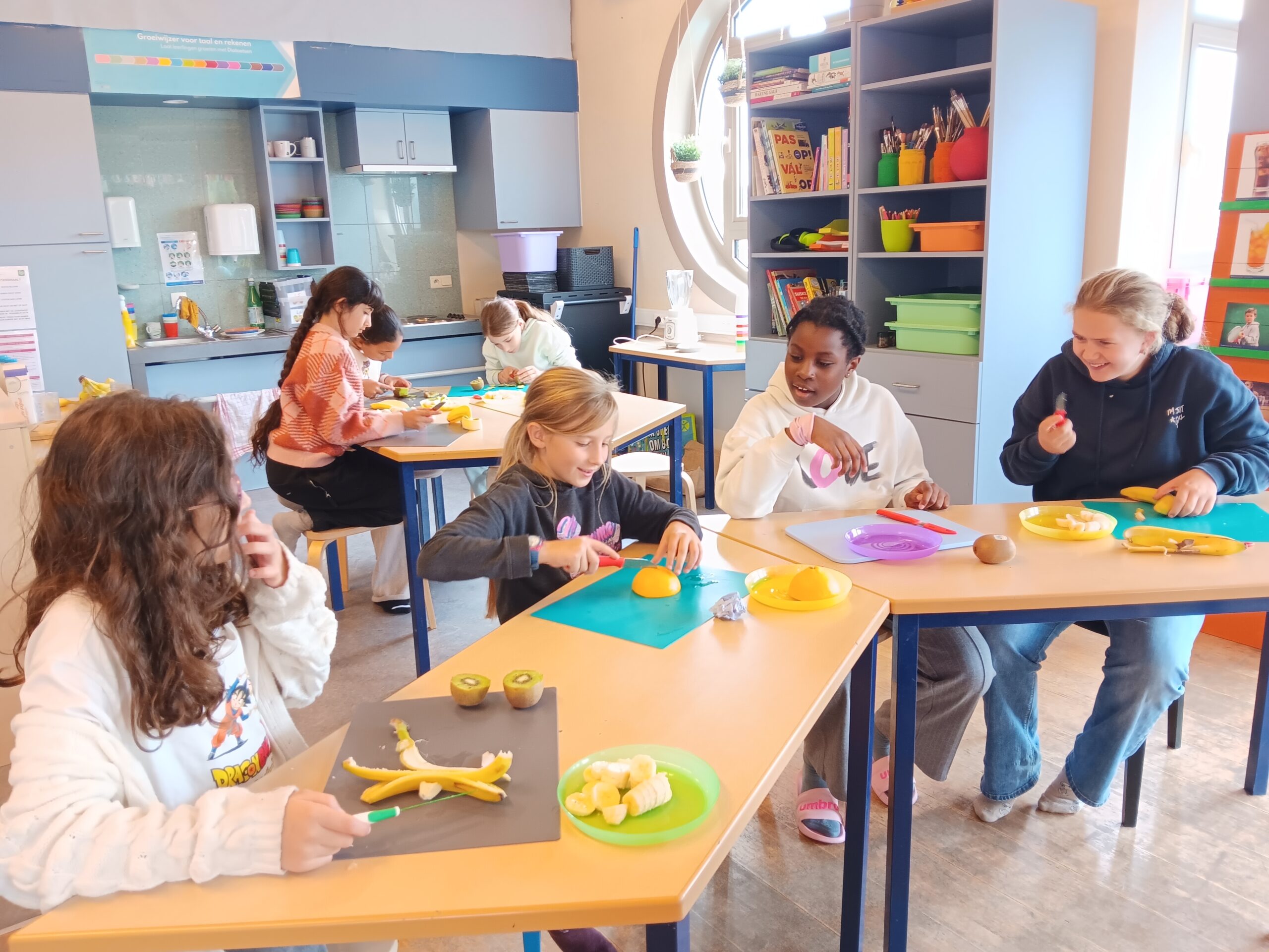 Op donderdag maakten we samen gezonde smoothies met banaan, kiwi, sinaasappel, melk, yoghurt en agavesiroop om de verjaardag van juf te vieren. Daarna kwam juf Lobke opnieuw in de klas en schreven we voor iedere klasgenoot een compliment op een post-it.