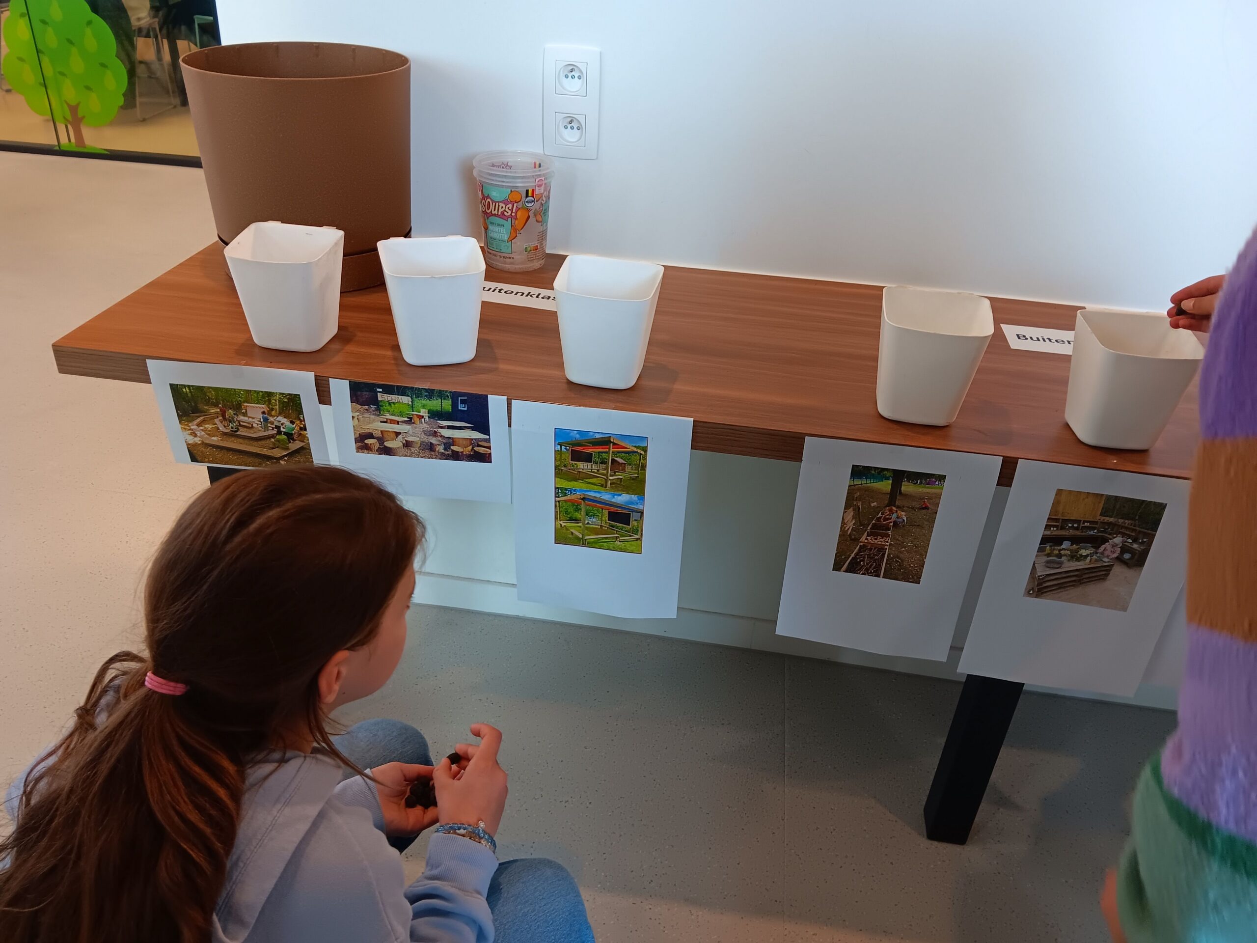Deze week mochten alle kleuters en kinderen van de lagere school ook mee beslissen hoe onze groene speelplaats er zal uitzien. Voor verschillende hoeken, zoals de buitenklas, de buitenkeuken, speelhoeken of de moestuin mochten ze uit enkele foto’s hun favoriet kiezen. Ook onze klas heeft al haar stem uitgebracht.