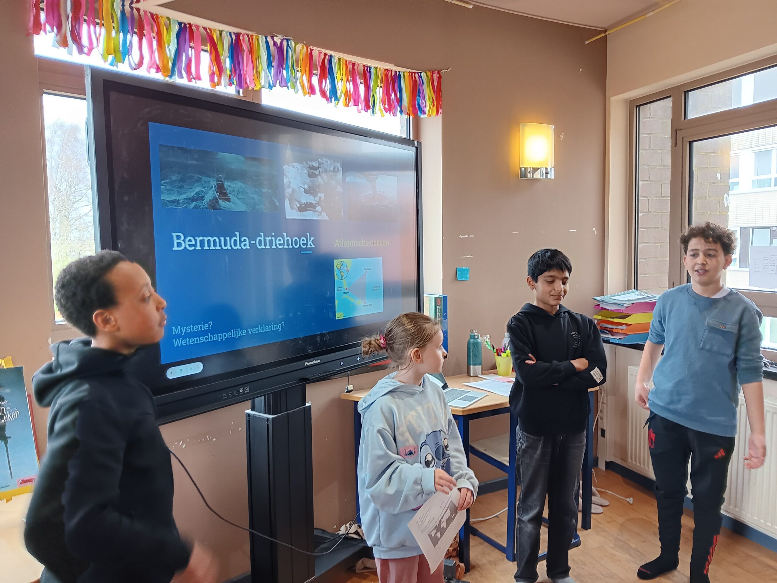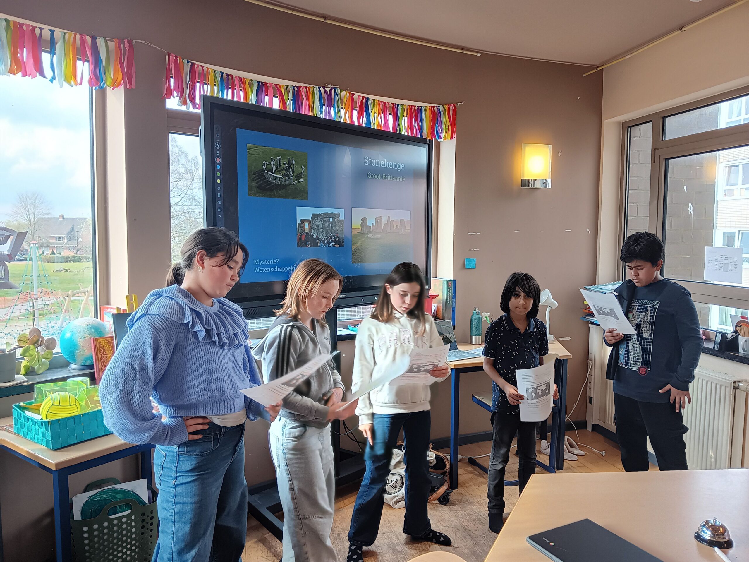 Deze week stonden verschillende WO-lessen over dit thema op het programma. De leerlingen van het 4de, 5de en 6de werkten in gemengde groepjes en leerden al doende bij. Zo ontdekten we de mysteries van de Bermudadriehoek, Stonehenge, het Kromme en het Dansende Bos.